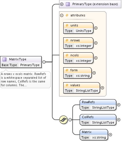 Being an extension of the PrimaryType, MatrixType defines following elements and attributes: